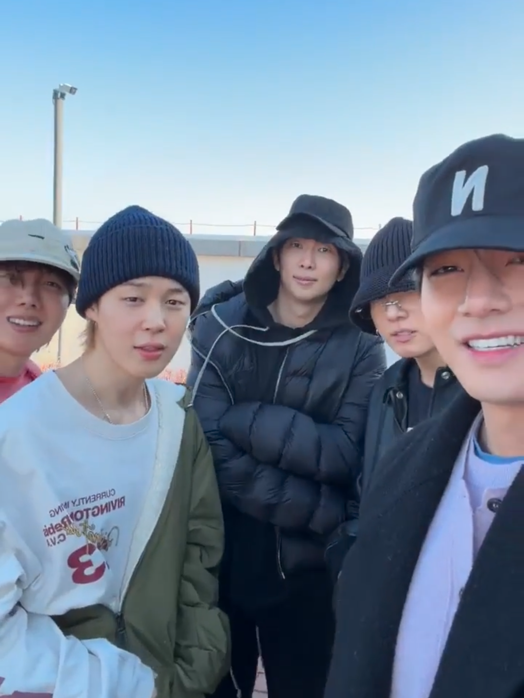 Jung Kook (refusing to let go of Jin/Jimin or move): wanna comeback ASAPPP and just do our activities (V is mushing his head and has made JK's beanie cover his eyes)