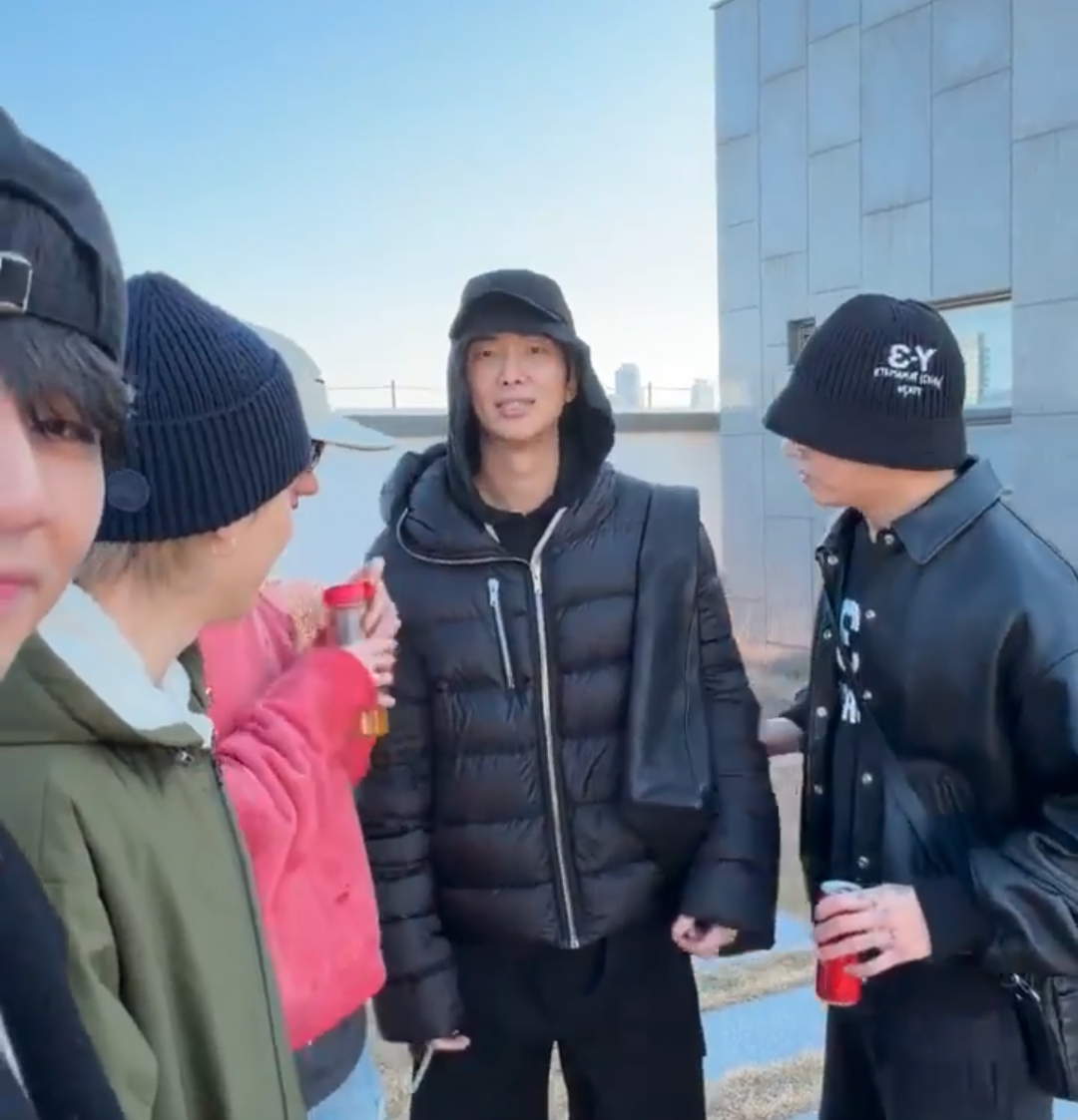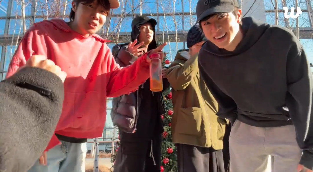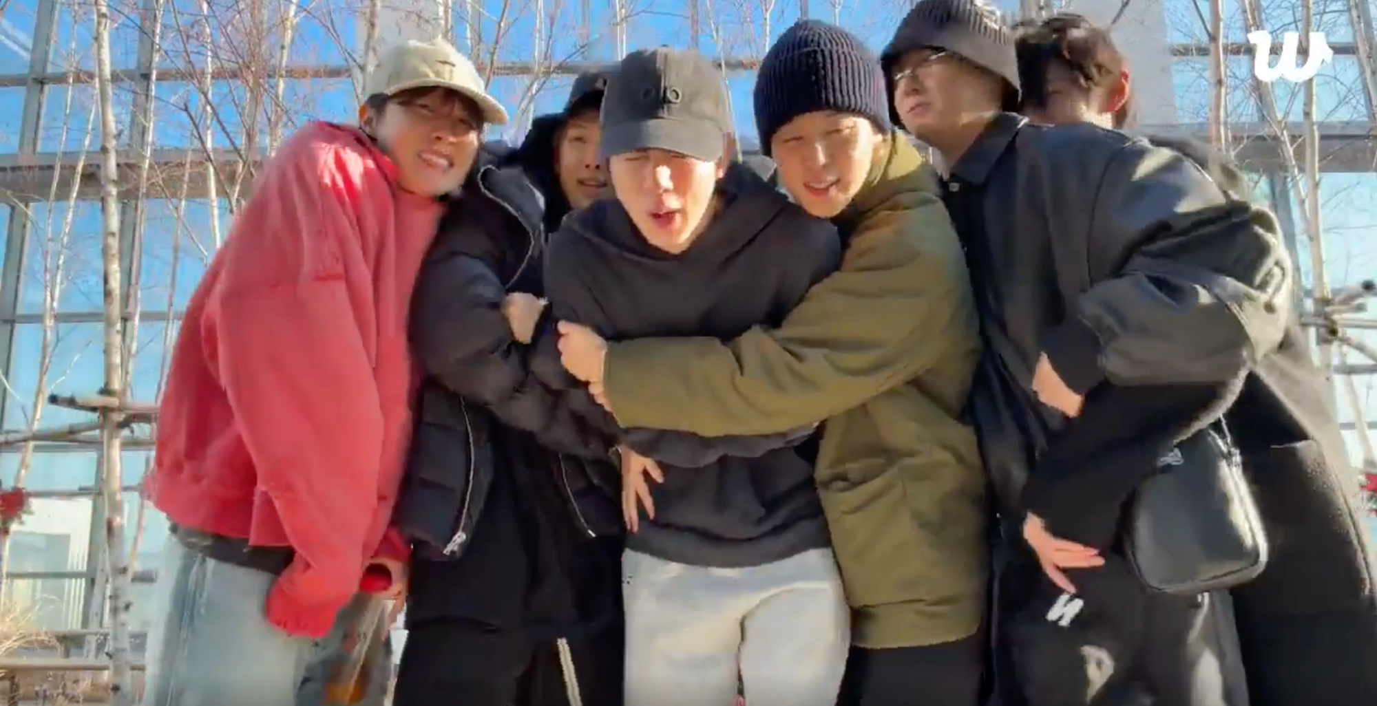 please watch them all turn into a blob of cute as they all huddle around their frozen little mat hyung whom they've tricked into sharing