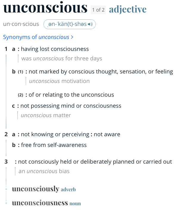 For any readers that may assert something like "unconscious" only ever refers to being asleep/knocked out - that is actually a misunderstanding!